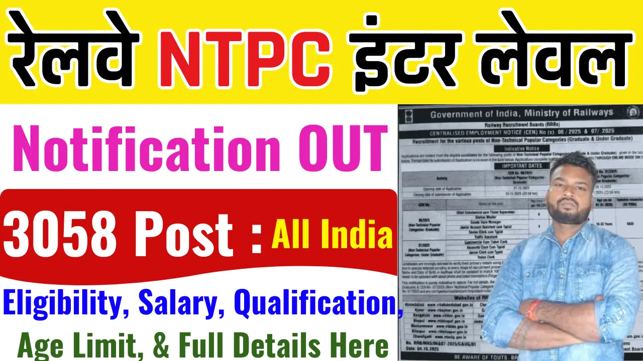 RRB NTPC 12th Level Vacancy 2025 Apply Online For 3058 Posts | रेलवे एनटीपीसी भर्ती 2025 ऑनलाइन आवेदन शुरू