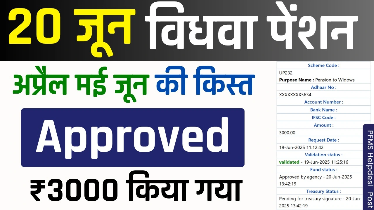 20 जून को आज विधवा पेंशन का पैसा Approved किया गया है : UP Vidhwa Pension Kab Tak Aayegi