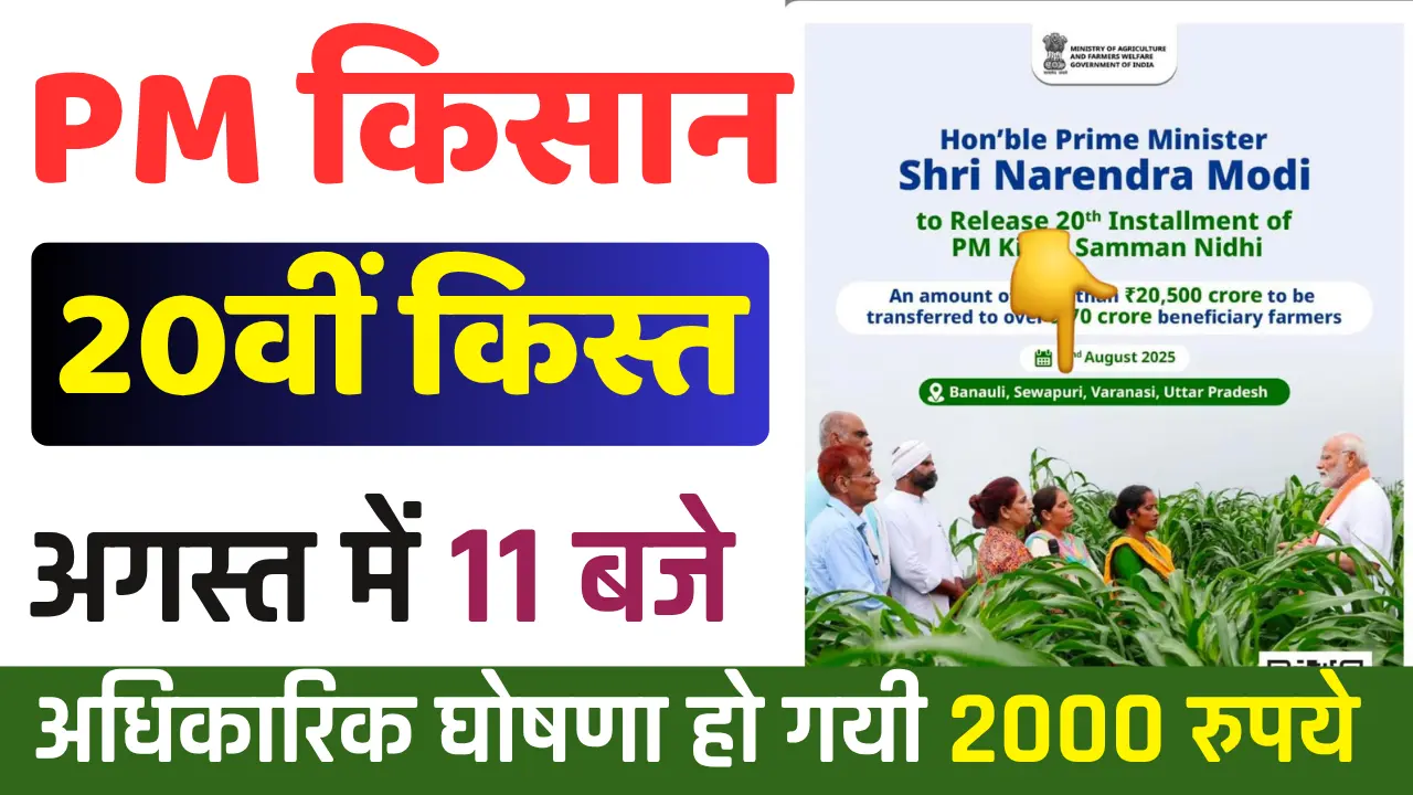PM-KISAN 20th Installment :- The Pradhan Mantri Kisan Samman Nidhi (PM-KISAN) is one of the most impactful farmer welfare schemes by the Government of ...