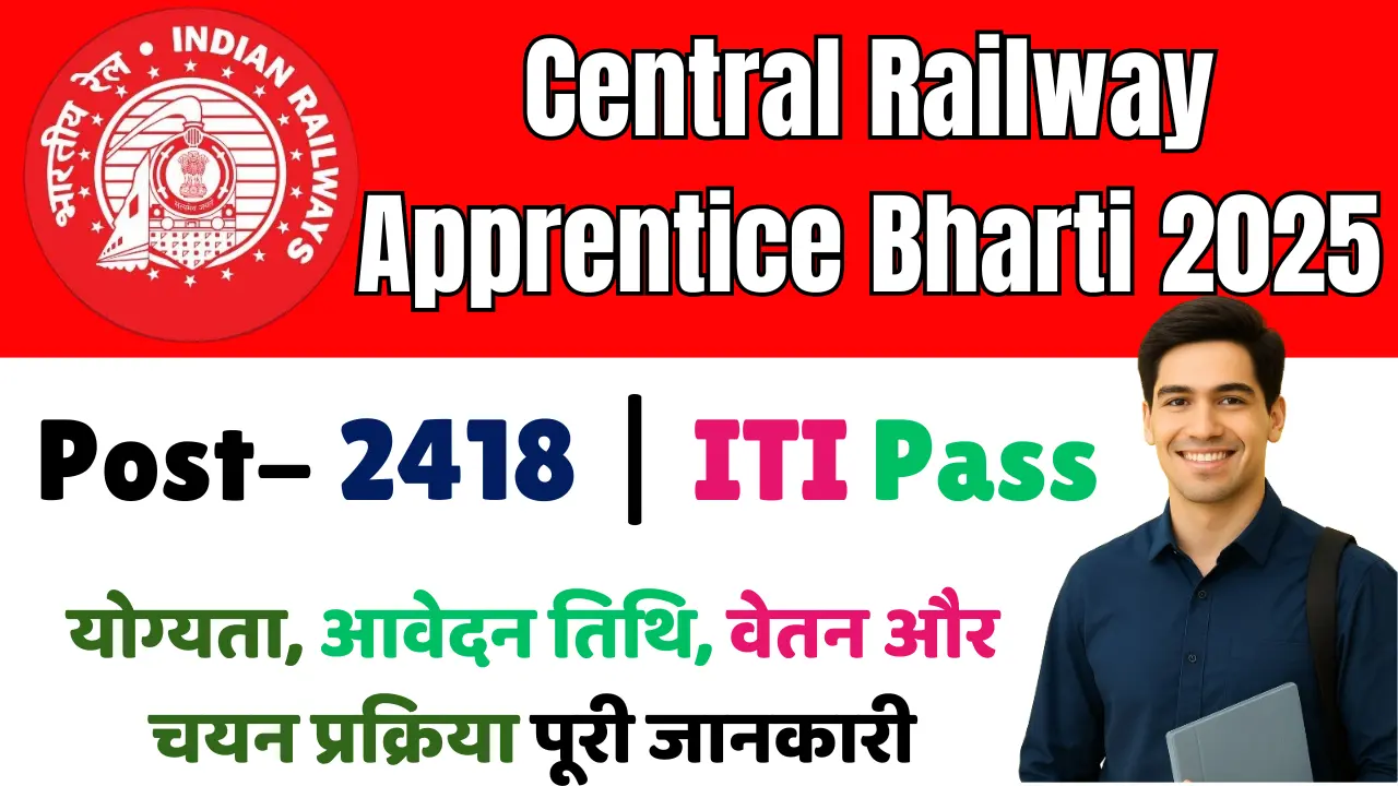 Central Railway Apprentice Vacancy 2025: सेंट्रल रेलवे अपरेंटिस भर्ती 2418 पदों पर आवेदन शुरू