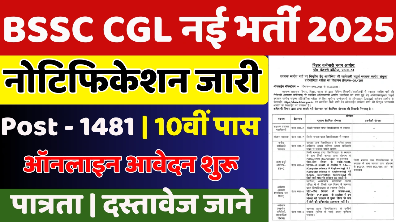 BSSC CGL-4 Vacancy 2025: 1481 पदों पर भर्ती, आवेदन तिथि, योग्यता और सिलेबस